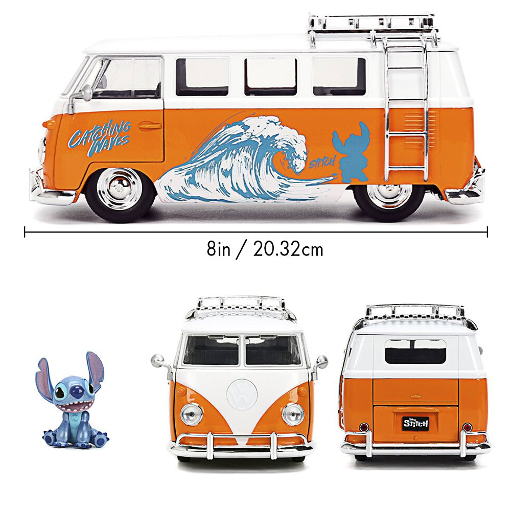 - 1 Stitch Figur und 1 Modellauto mit Freilauf: Nachbildung des 1961er Volkswagen T1 im Maßstab 1:24 mit Lilo & Stitch Artwork