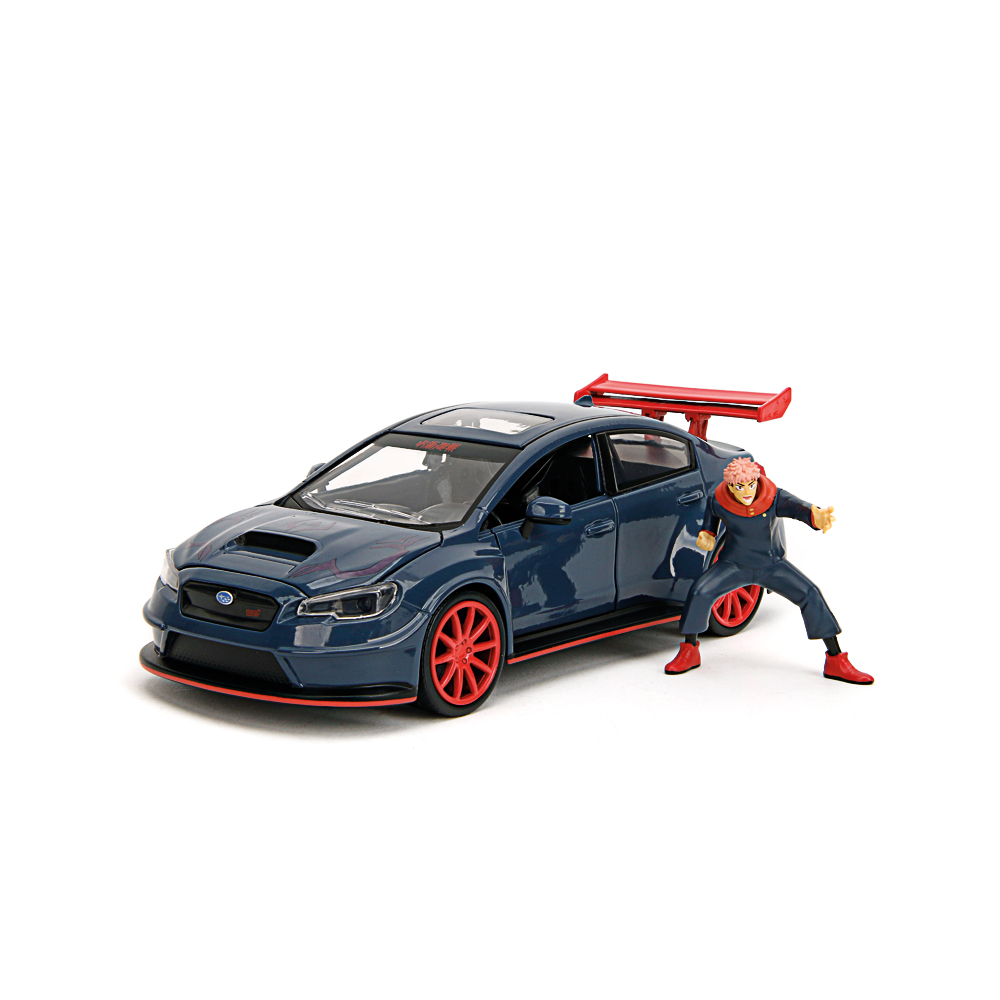 Jada Toys Jujutsu Kaisen Figur Yuji Itadori mit Modellauto 2016er Subaru WRX STI Wideboy - Set aus Actionfigur (7 cm) und Spielzeug-Auto (20 cm) für Manga- und Anime-Fans ab 8 Jahre