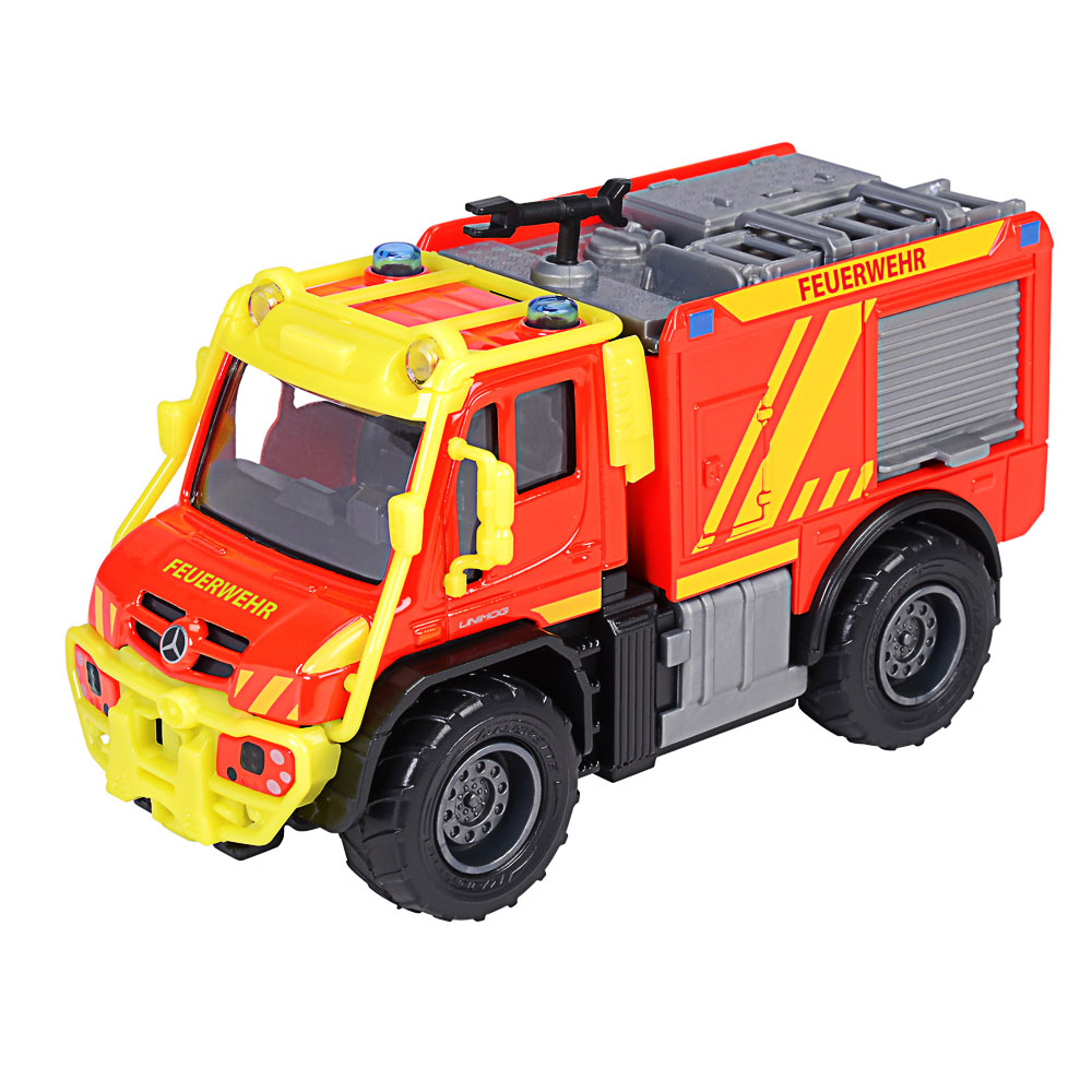 - Wie ein echter Retter - Genau so sieht ein Feuerwehrwagen aus: Dieses Spielzeugauto ist eine offiziell lizenzierte Nachbildung des Mercedes-Benz Unimog U530 - mit deutscher Feuerwehr-Beschriftung!