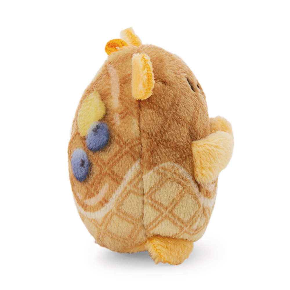 Woff ist ein brauner Hund im Belgische Waffel-Look mit Blaubeeren, flauschige 5cm groß und aus kuschelweichem NICI-Plüsch gefertigt.