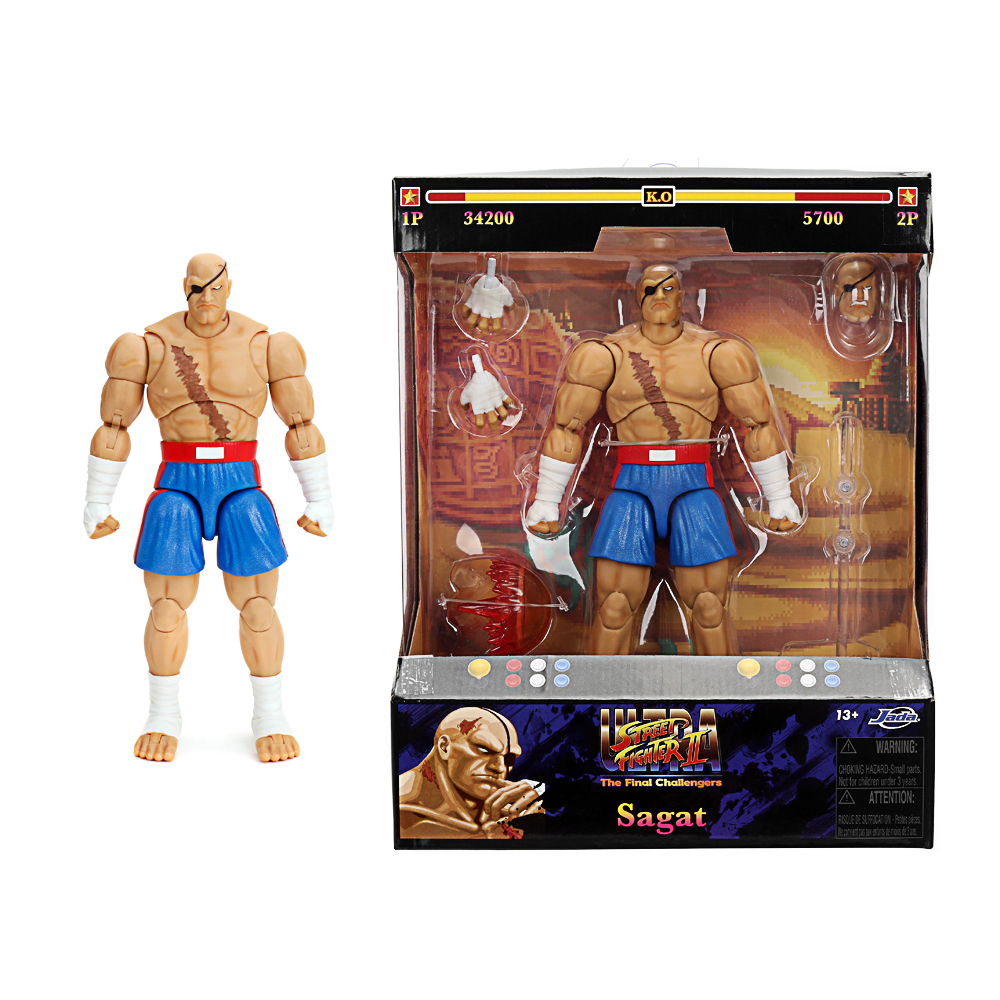 Hol dir den König des Muay Thai direkt aus dem Arcade-Klassiker Street Fighter II! Die detailreiche Sagat-Figur von Jada Toys begeistert mit authentischem Design, beweglichen Gelenken und kultigen Accessoires 13 ein Muss für Sammler und Gaming-Fans!