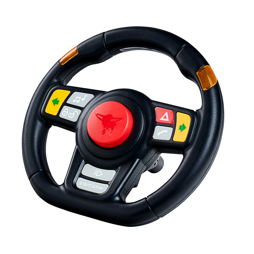 Dieses moderne Multifunktionslenkrad kommt in seiner Optik und Funktionalität den Vorbildern aus der echten Automobilwelt erstaunlich nahe und passt perfekt an alle BIG Bobby Cars und BIG Traktoren ab Baujahr 2010.
