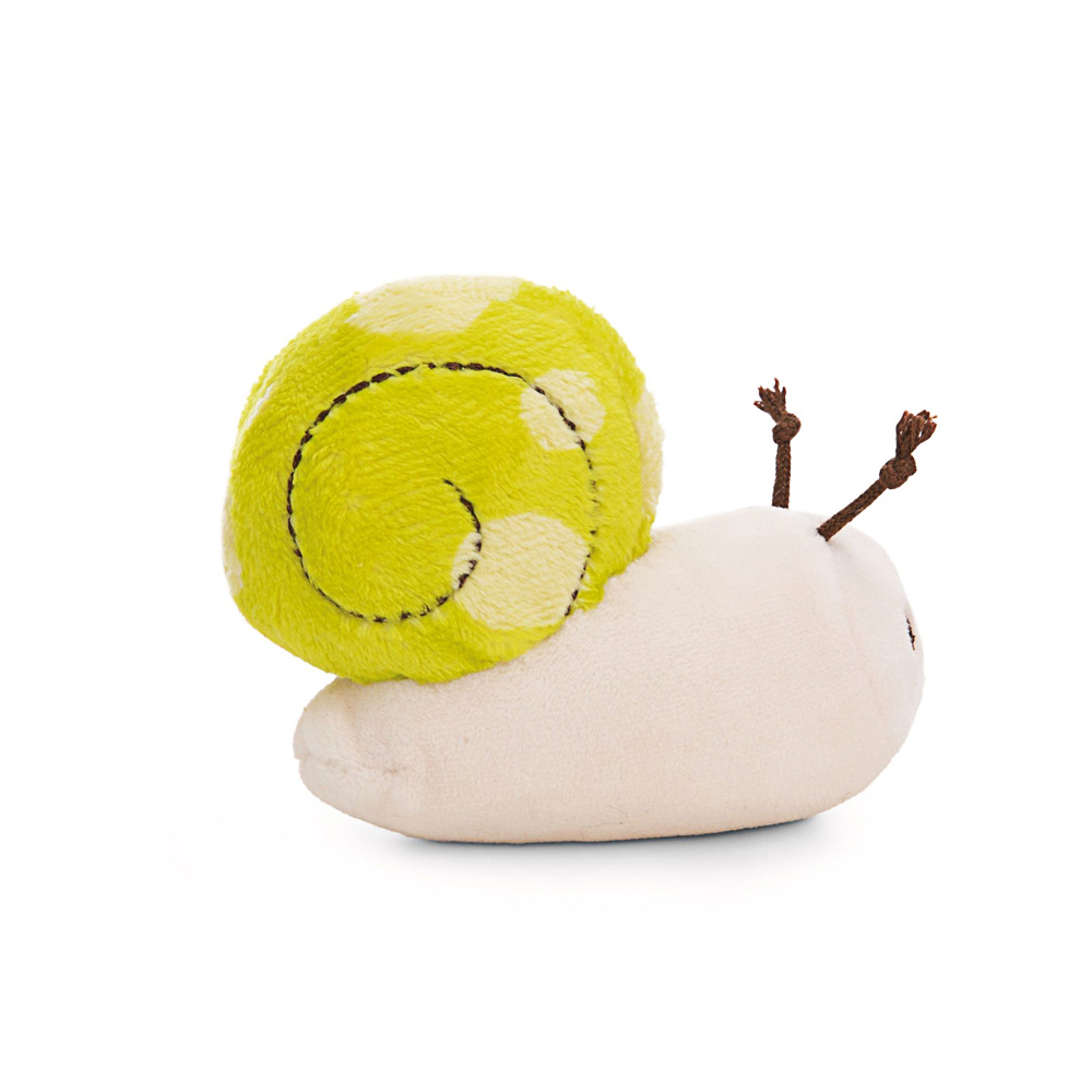 Die entzückende kleine weiße Plüschschnecke bezaubert mit ihrem grasgrünen Schneckenhaus mit hellgrünem Muster aus kuschelweichem Plüschmaterial.