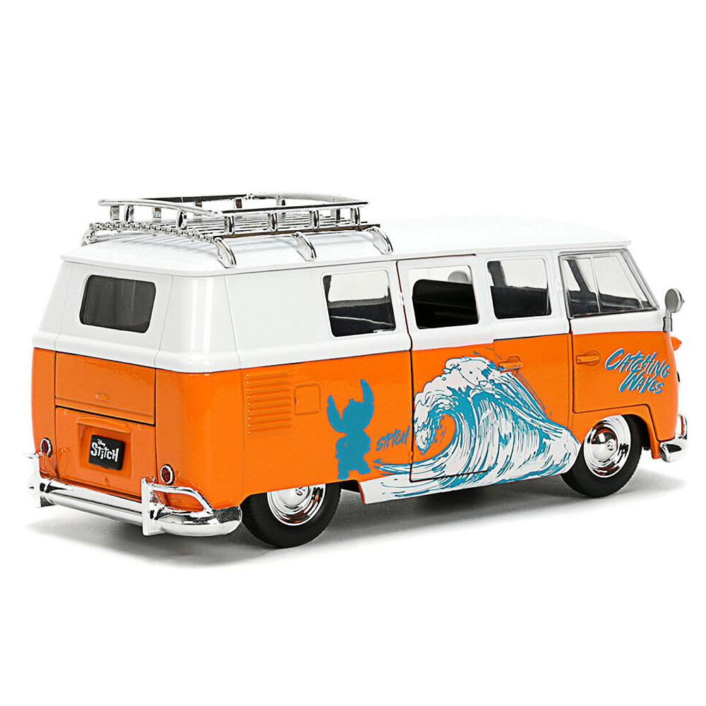 - 1 Stitch Figur und 1 Modellauto mit Freilauf: Nachbildung des 1961er Volkswagen T1 im Maßstab 1:24 mit Lilo & Stitch Artwork
