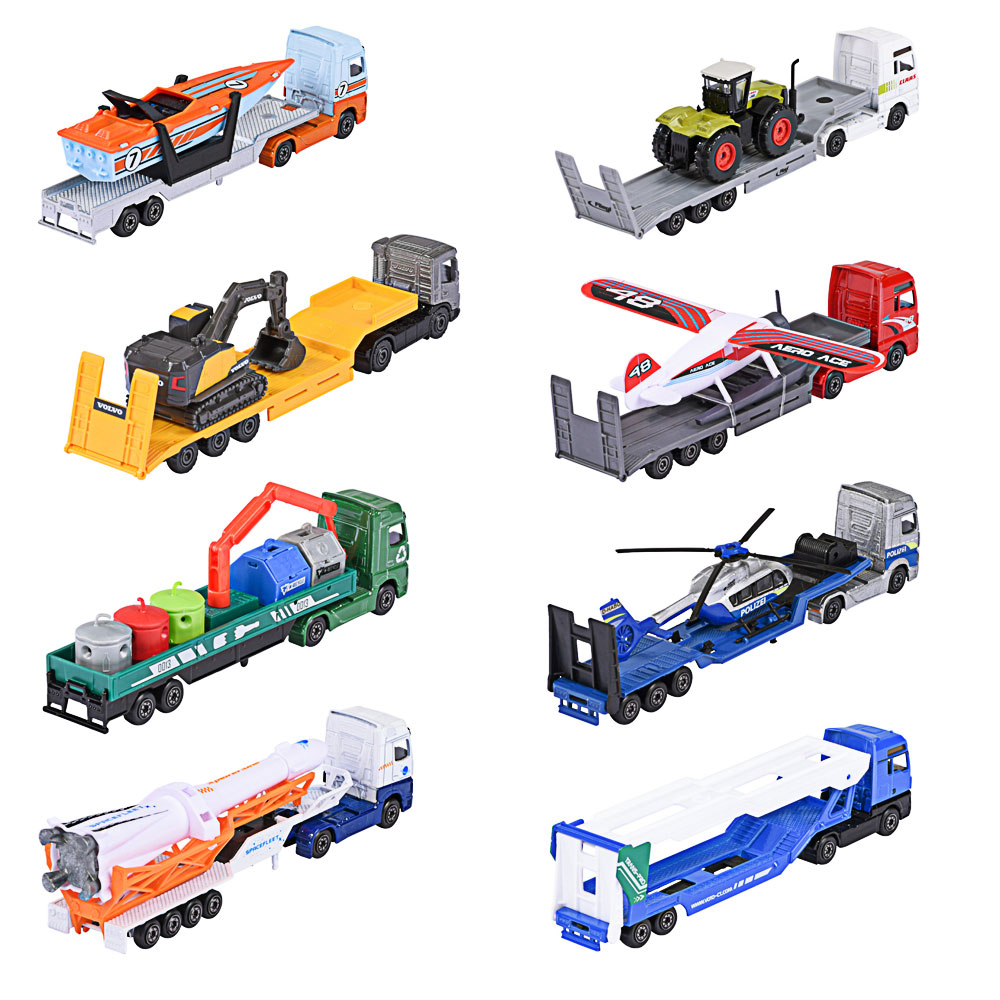 Majorette Auto City Transporter (1 Modellauto) - Spielzeug-Truck aus Metall mit Anhänger, Freilauf & beweglichen Teilen, für Kinder ab 3 Jahre, je 20 cm
