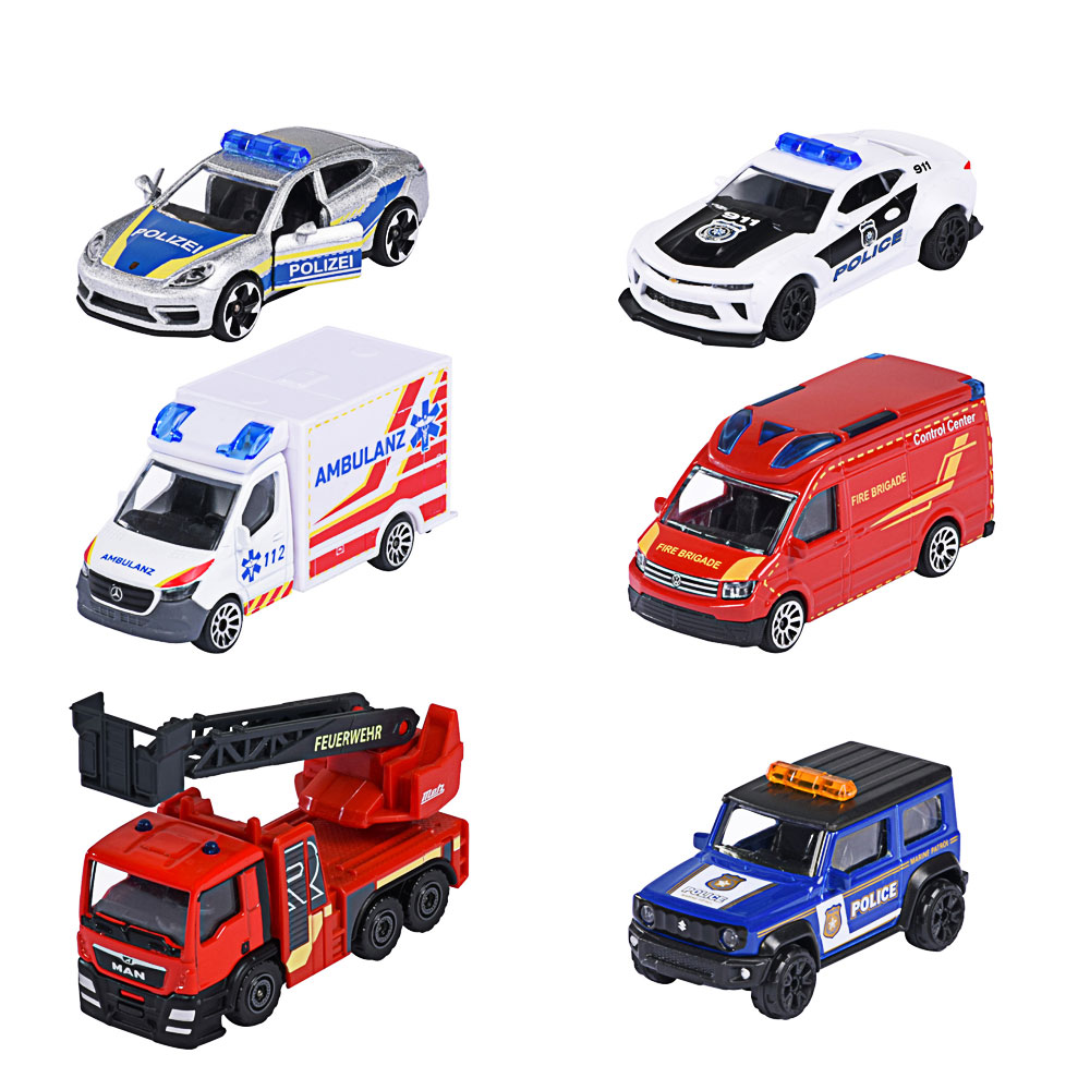 - Bereit für jede Mission - Ob Polizeiauto, Feuerwehr oder Krankenwagen: Die ca. 7,5 cm langen Spielautos mit Freilauf, Metall-Karosserie und z.T. beweglichen Elementen sind allzeit einsatzbereit.