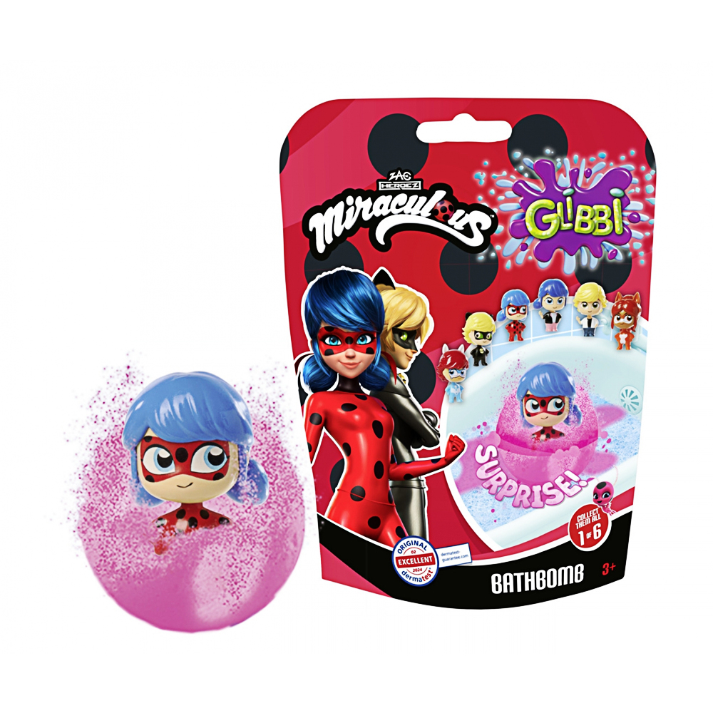 Badebombe mit Überraschung - In jeder Packung befindet sich eine von vier bunten Glibbi Miraculous Surprise Badebomben, die nicht nur das Badewasser bunt einfärbt, sondern auch noch eine von sechs bekannten Figuren aus Miraculous zum Sammeln enthält.